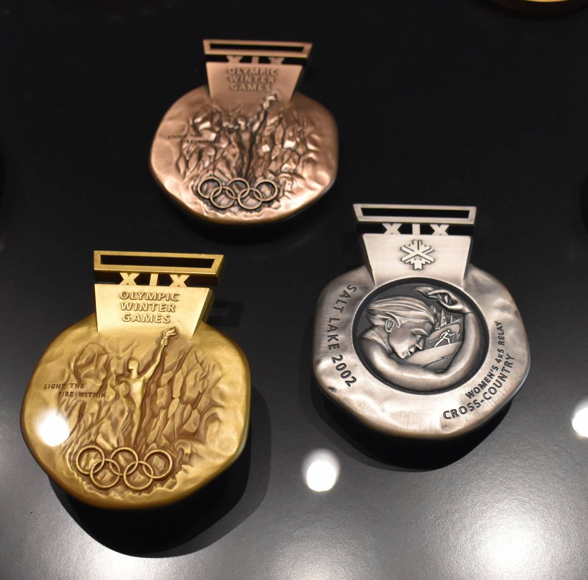 Olympijské medaile ze zimních her v Salt Lake City 2002.